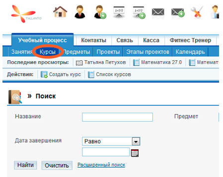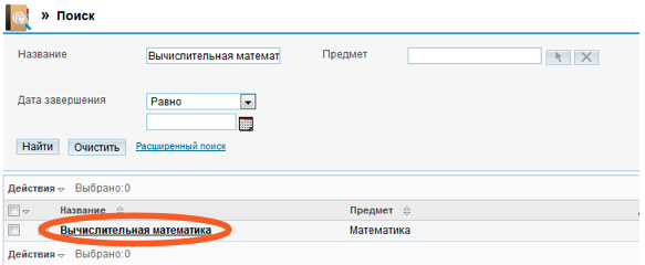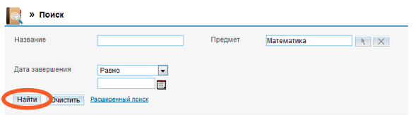 2. Введите данные о курсе, например предмет, и нажмите кнопку Найти.