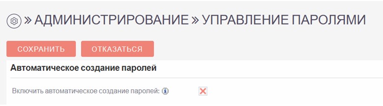 В разделе Администрирование – Управление паролями – есть галочка «Включить автоматическое создание паролей».