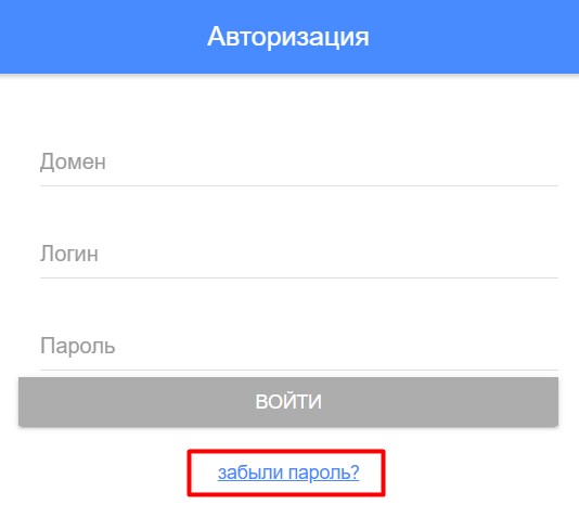 Перейдите по ссылке "Забыли пароль?" Внесите домен и Логин, связанный с карточкой пользователя.