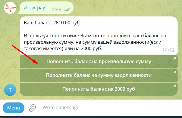 Кнопка – некоторые команды дают доступ к кнопкам. При нажатии на кнопку бот выполнит действие (в данном примере откроет ссылку на пополнение баланса).