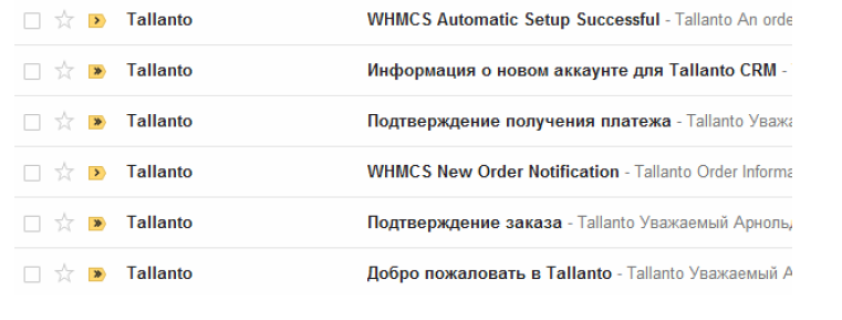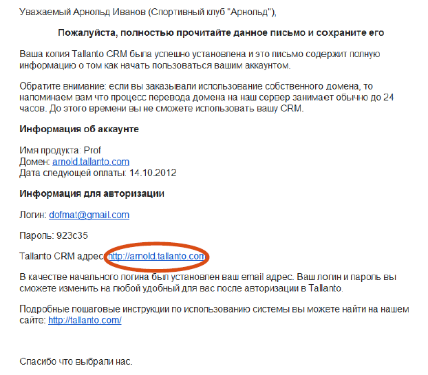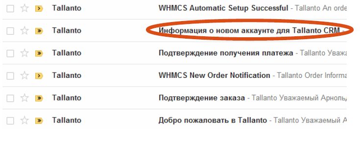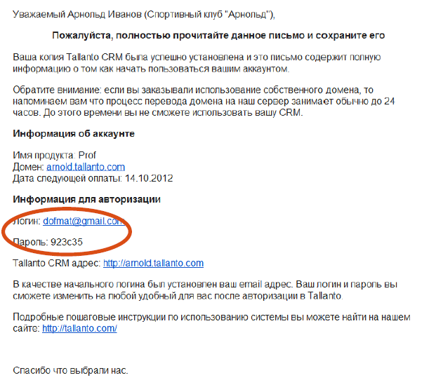 После оплаты первого месяца использования системы на вашу электронную почту придут несколько писем от Tallanto.