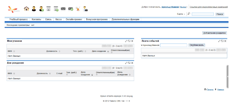 Поздравляем! Вы зашли в персональную систему Tallanto Prof.