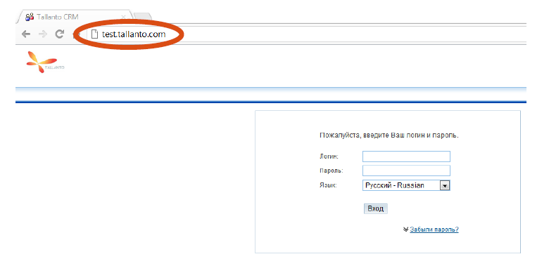 Введите логин и пароль (см. письмо Информация о новом аккаунте для Tallanto CRM)