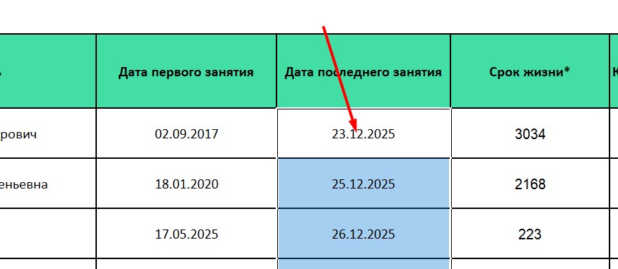 В отчетах сформированных в Талланто есть колонки с данными о датах (занятий, создания ученика и т.п.).