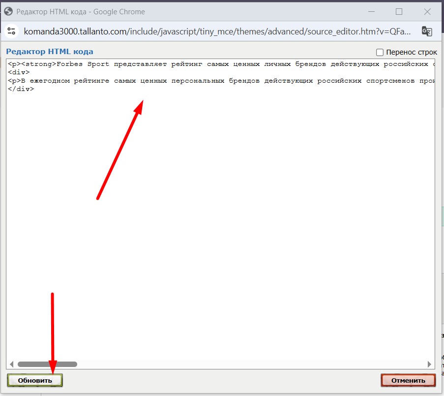 Во всплывающем окне скопируйте результат из буфера обмена (Ctrl+V). Нажмите "Обновить".