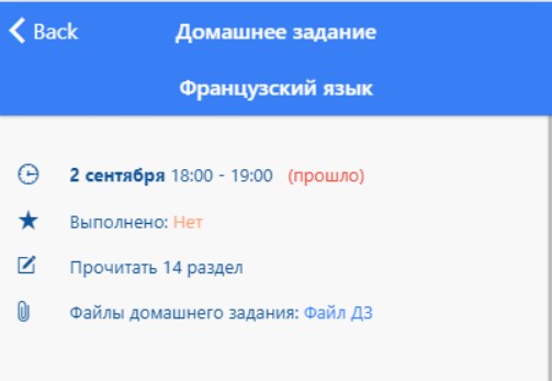 Успеваемость ученика в приложении, Домашнее задание