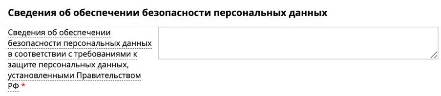Так же нужно заполнить «Сведения об организации, ответственной за хранение данных», как указано в примере ниже: